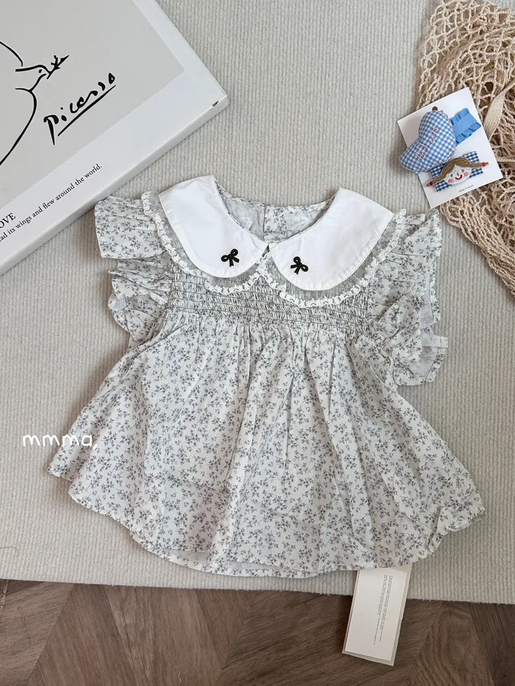 531翻領蕾絲荷葉袖碎花上衣(童裝)