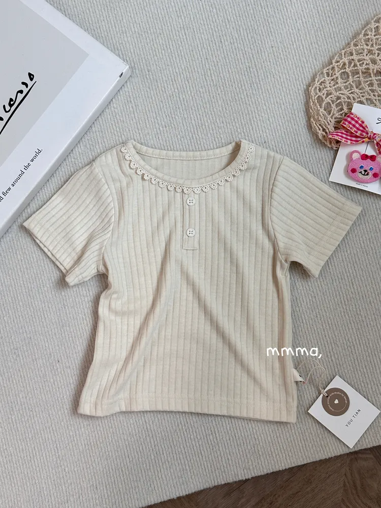 540領口花邊抗條壓紋上衣(童裝)