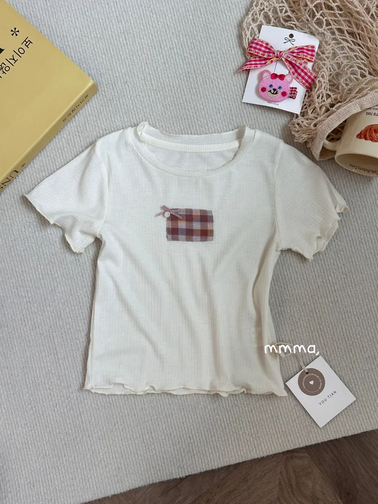 541蝴蝶結格子小布木耳邊上衣(童裝)