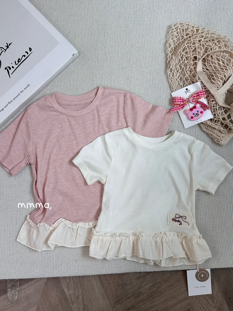 546蝴蝶結刺繡標花邊上衣(童裝)