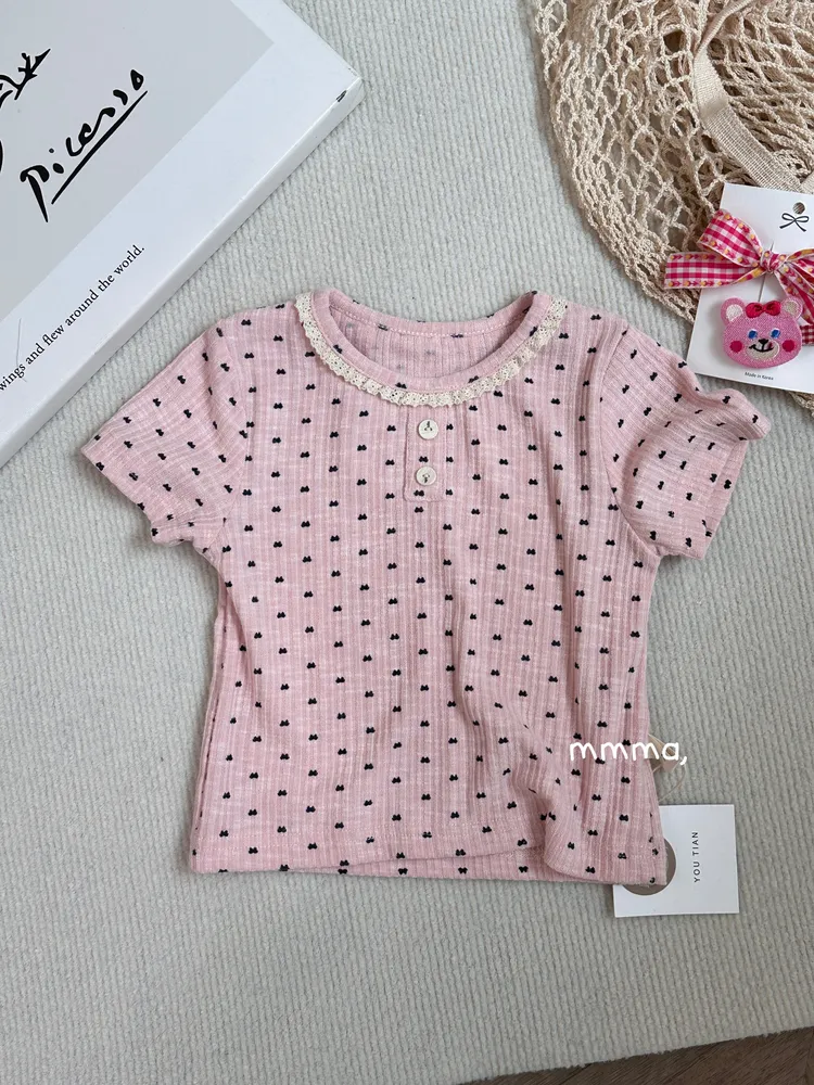 548滿版點綴蝴蝶結抗條紋上衣(童裝)