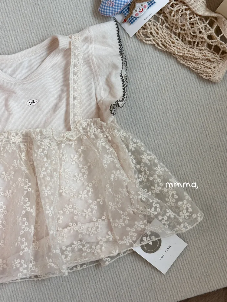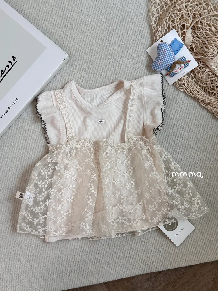 555雛菊雪紗吊帶&壓紋蝴蝶結小釦2件式上衣(童裝)