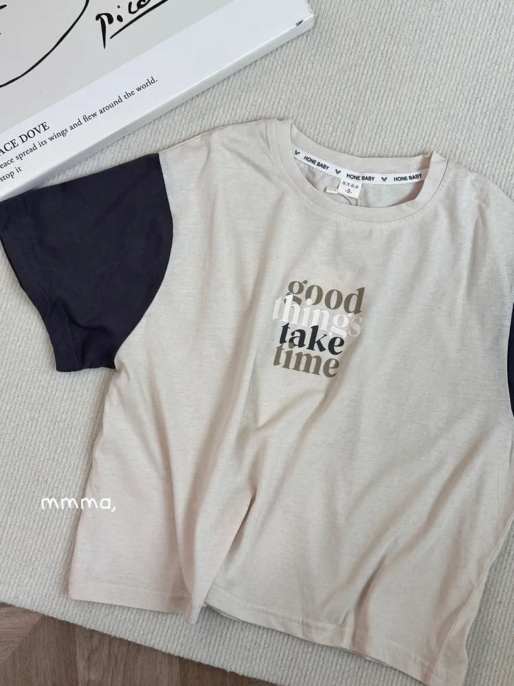 563字母印花拼接色tee(童裝)