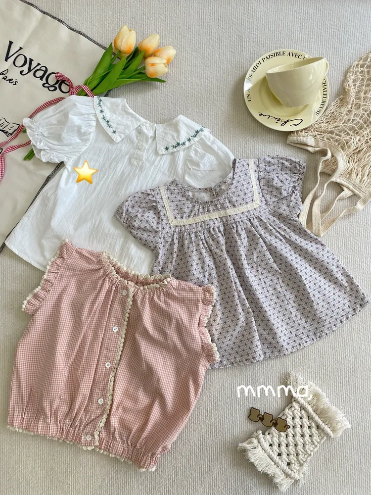 750翻領刺繡藤蔓縮口袖上衣(童裝)
