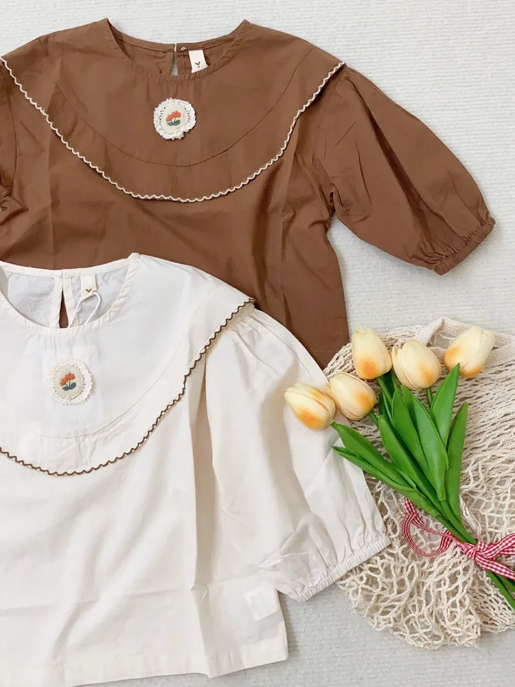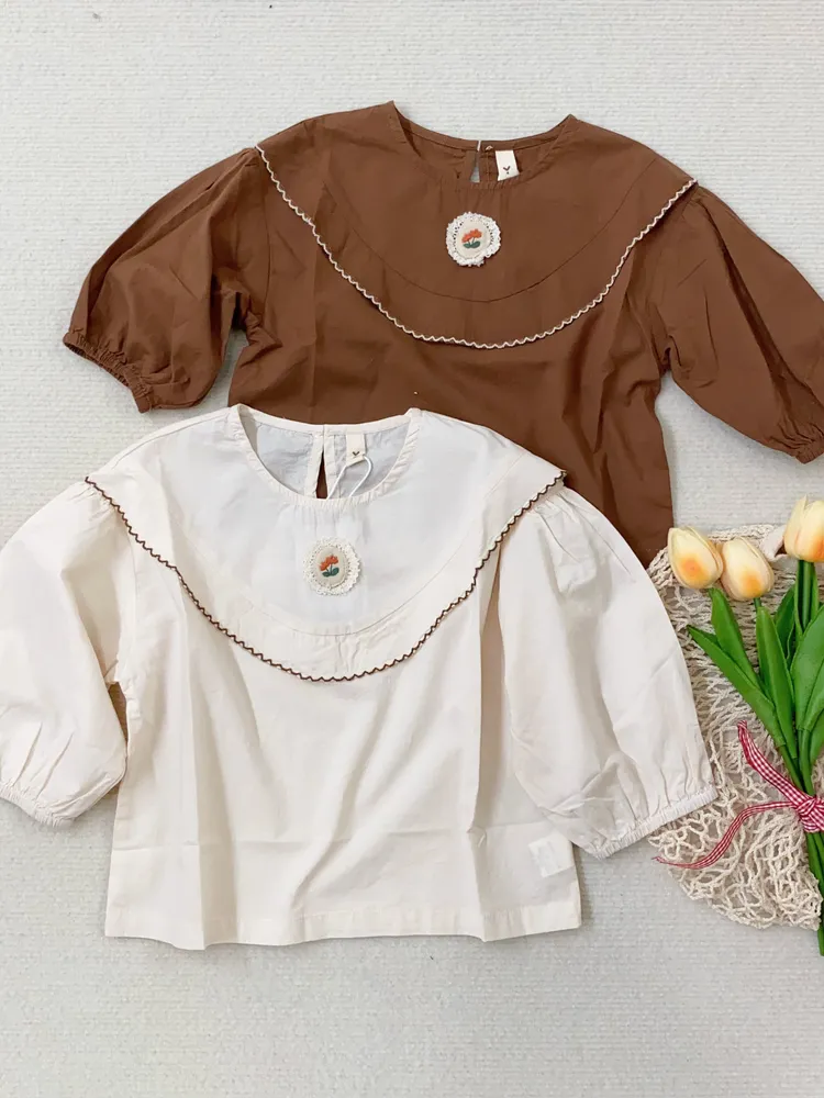 773復古刺繡蕾絲圍領縮口袖上衣(童裝)