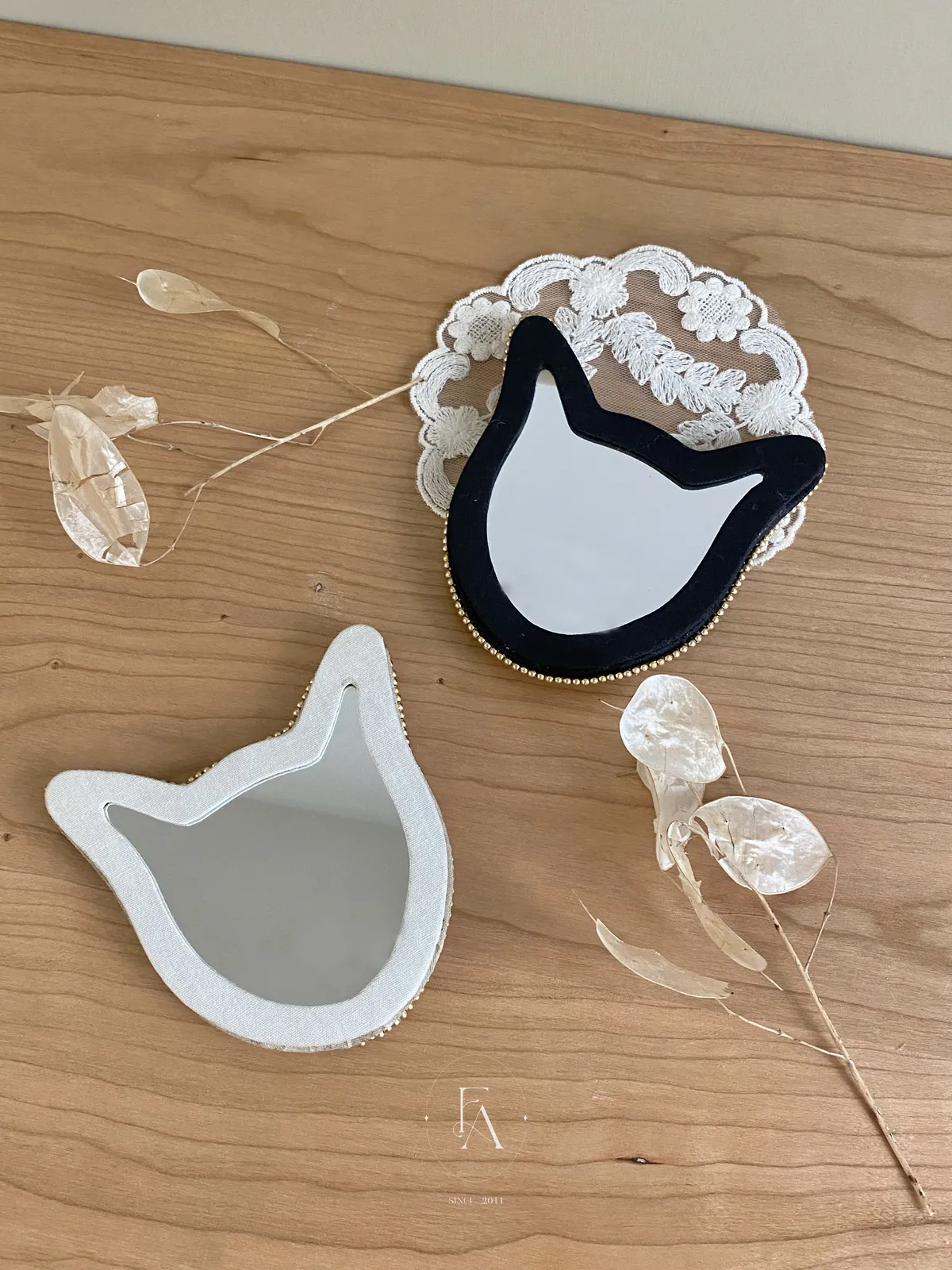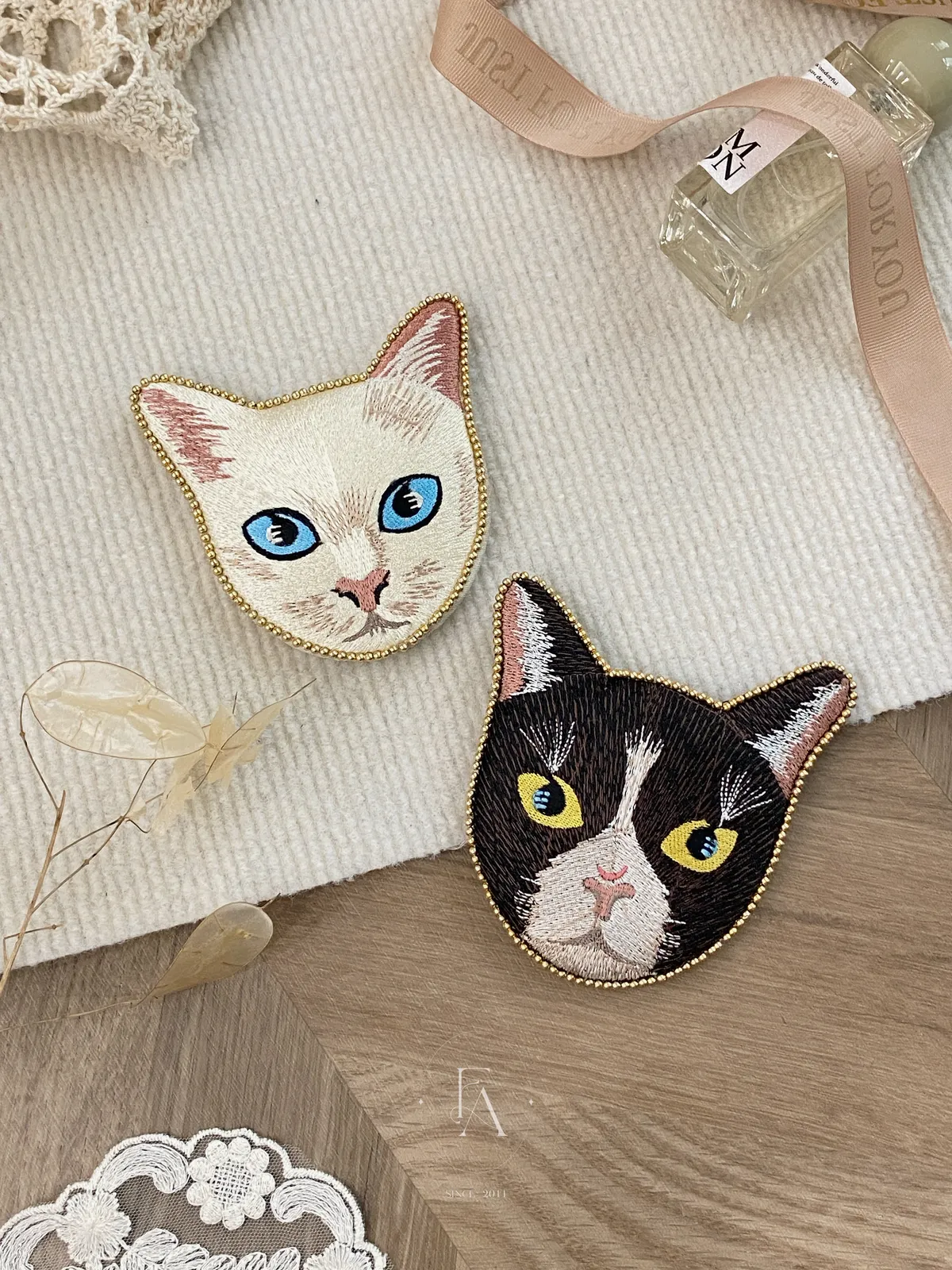 703日本精緻小貓刺繡串珠小鏡子