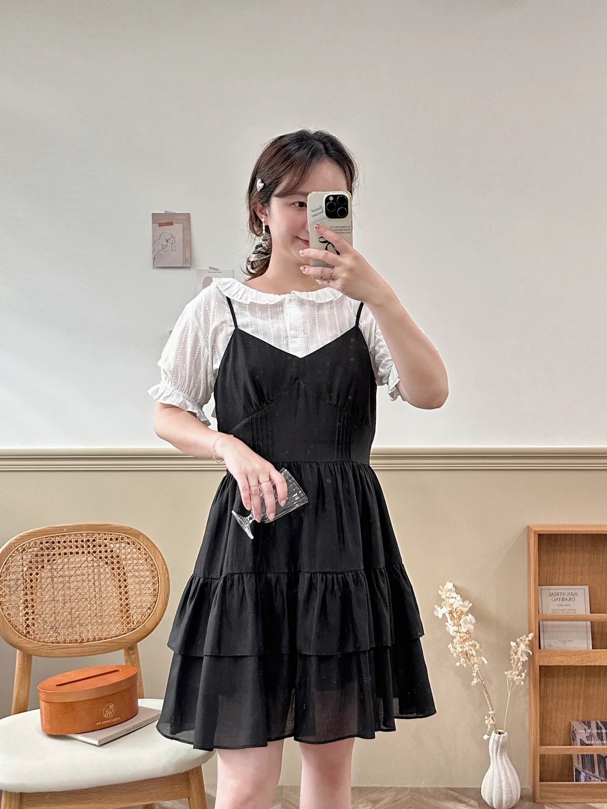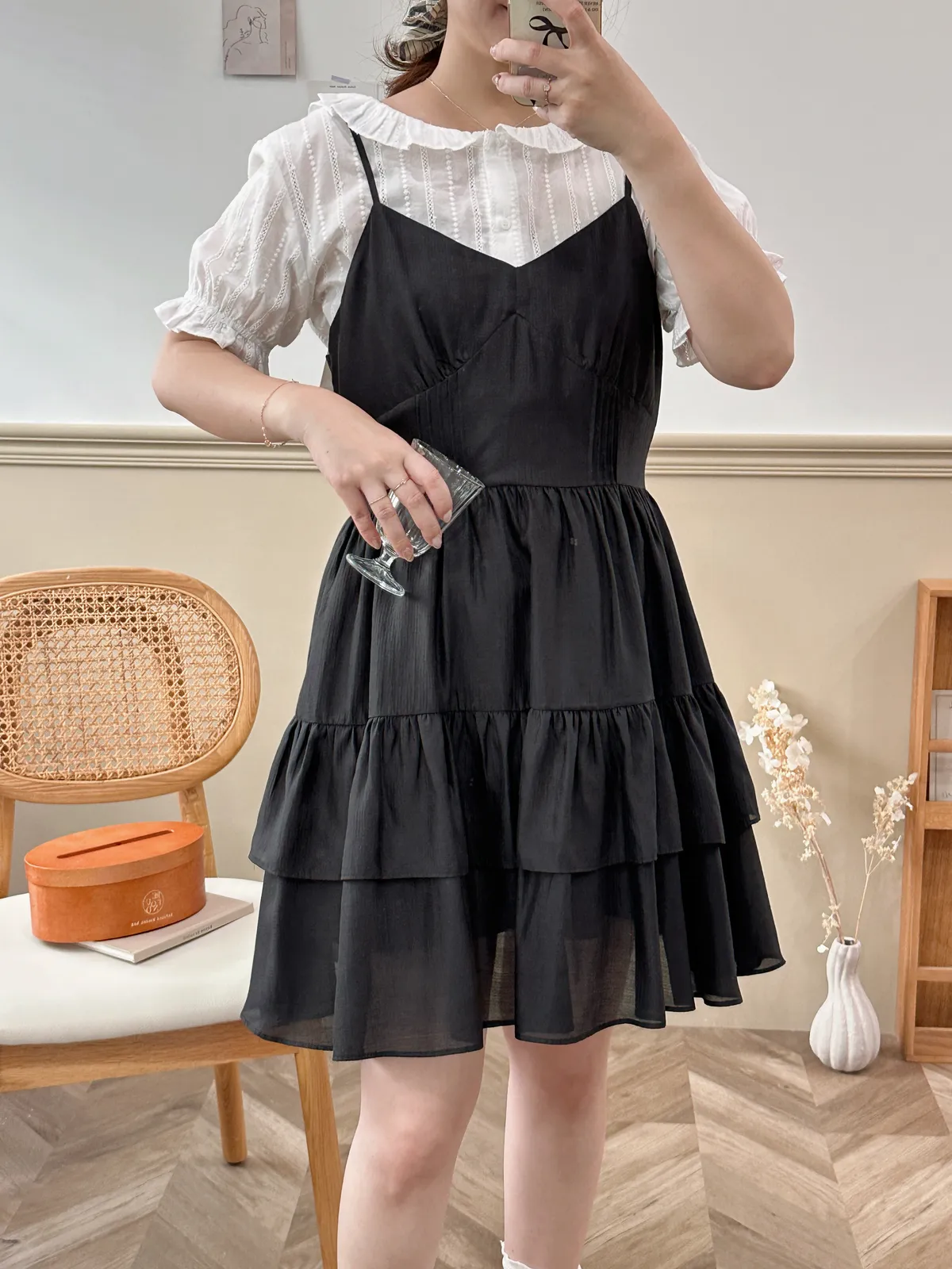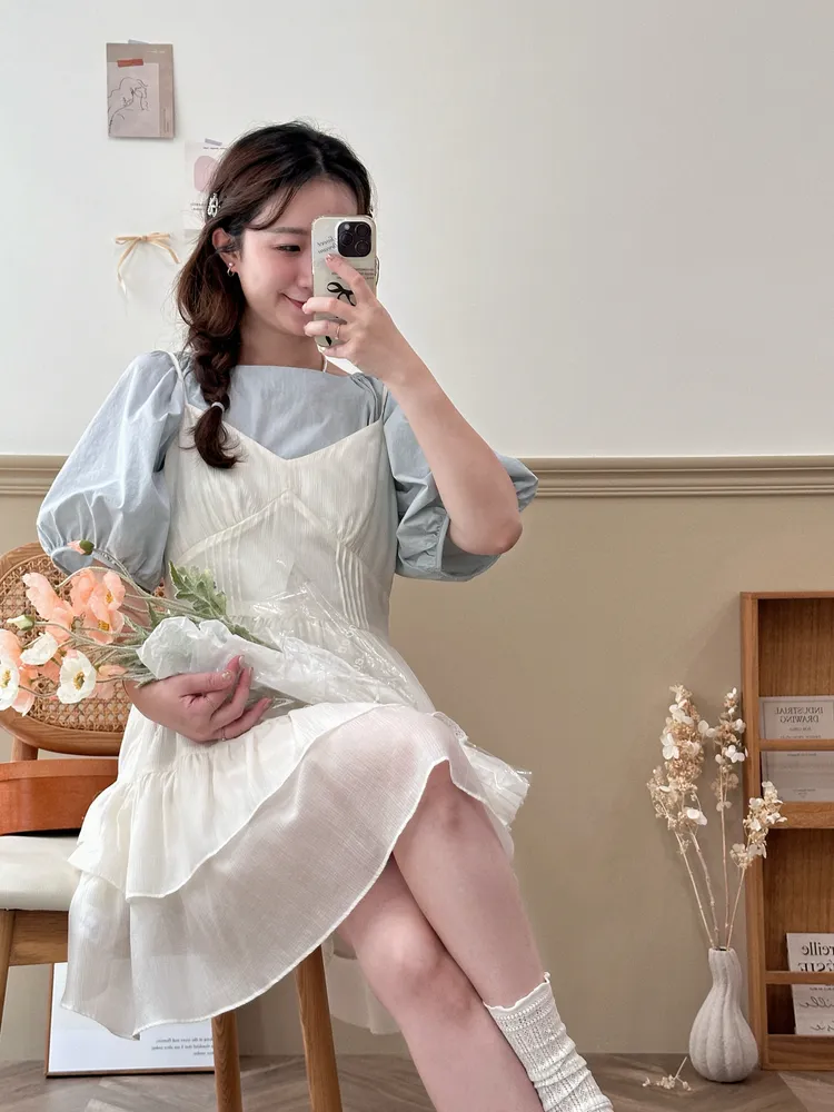 042韓甜甜蛋糕裙肩帶短洋裝