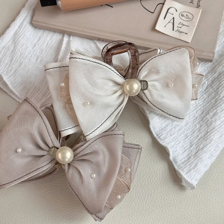 319蝴蝶結珍珠雪紡紗鯊魚夾
