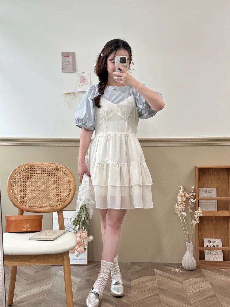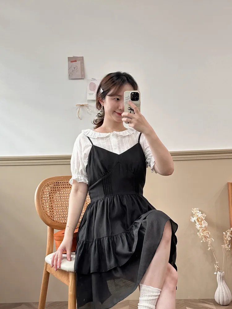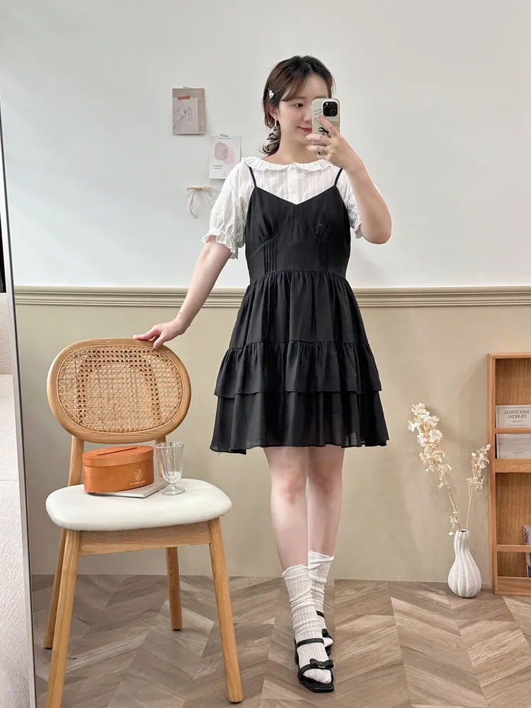 281韓甜甜蛋糕裙肩帶短洋裝