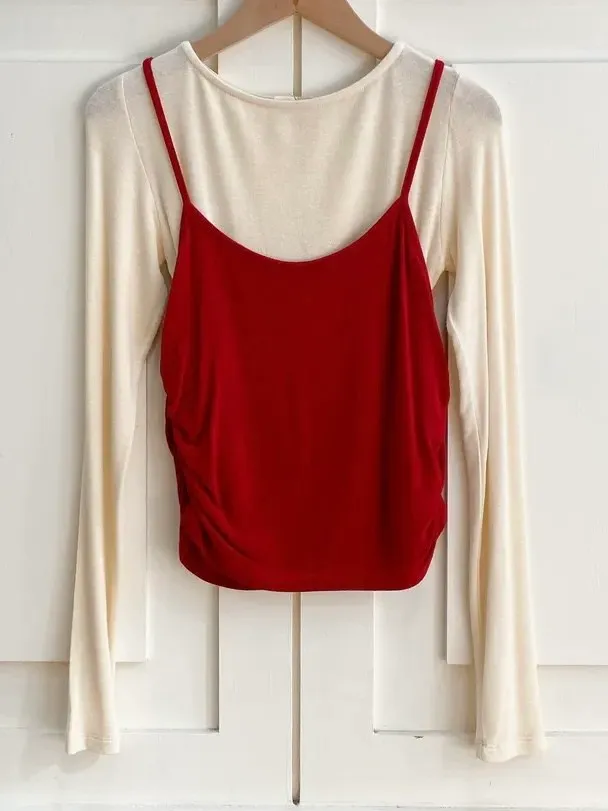 W862韓軟Q側抓皺配色兩件式上衣