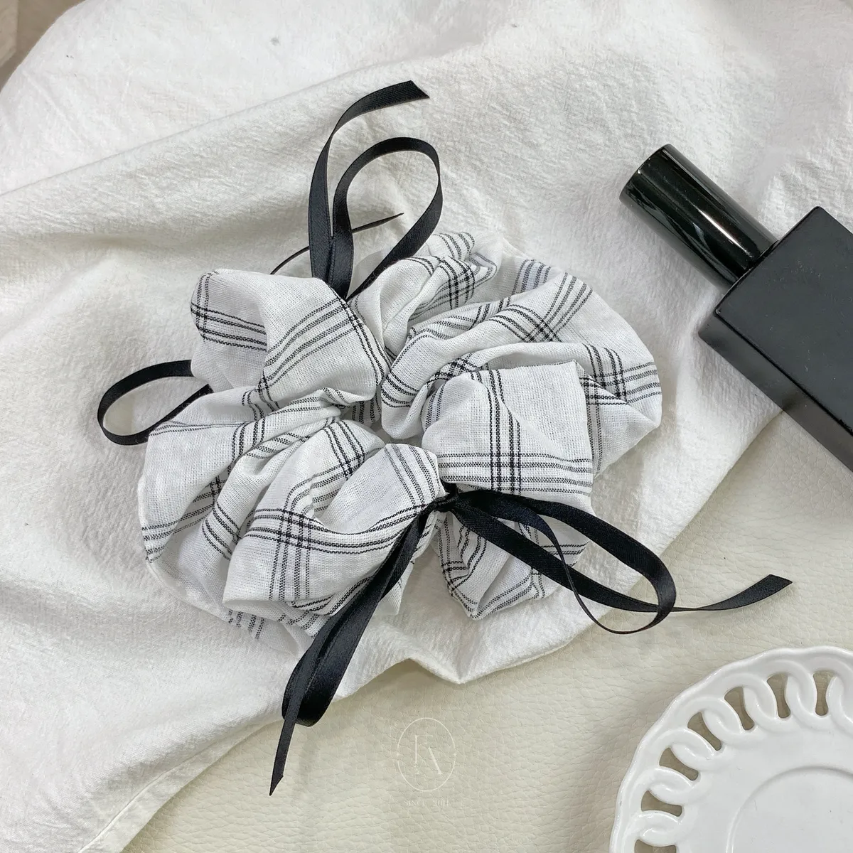 A40韓大格紋蝴蝶結緞帶腸圈