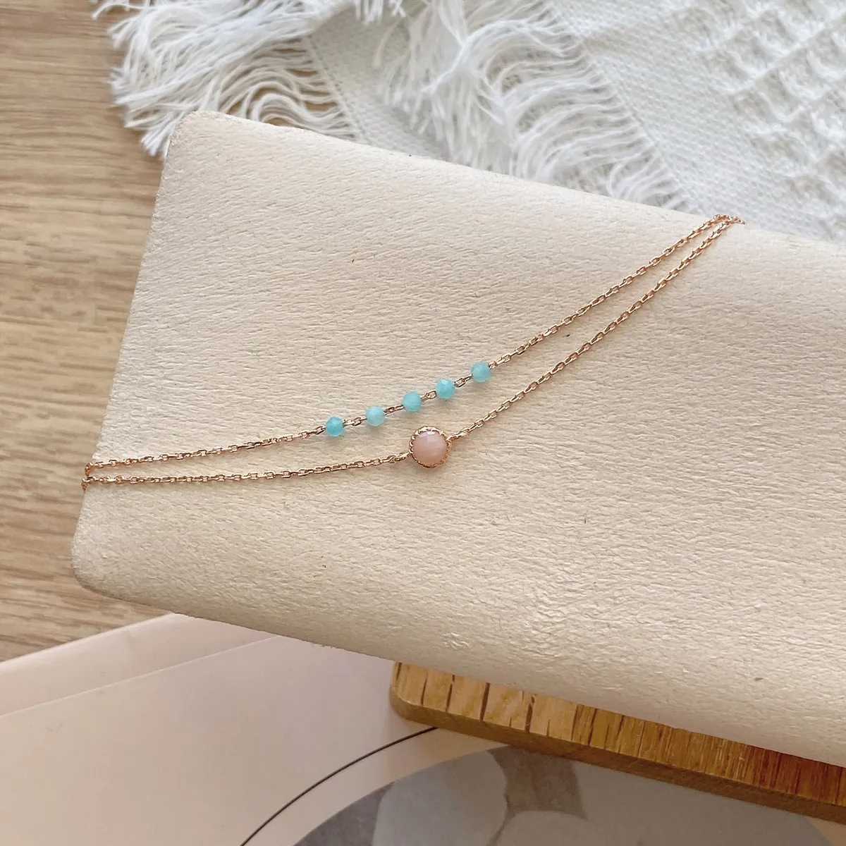 T95韓雙鍊5綠珠粉寶石手鍊(寶石家)