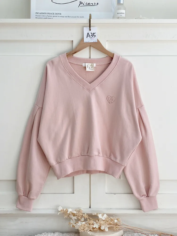 W006韓休閒V領愛心刺繡F上衣