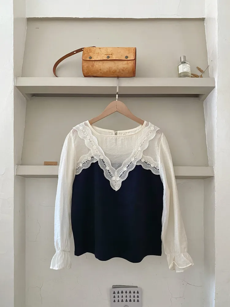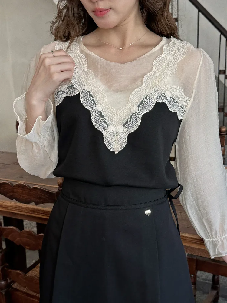 韓花川蕾絲馬甲長袖上衣(樣)