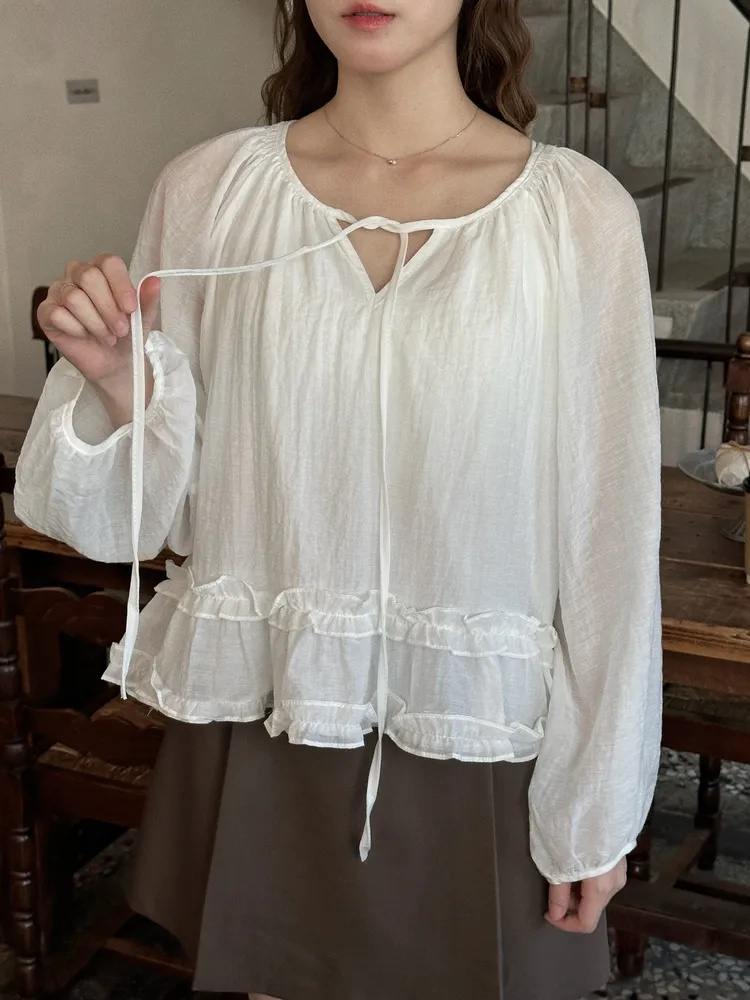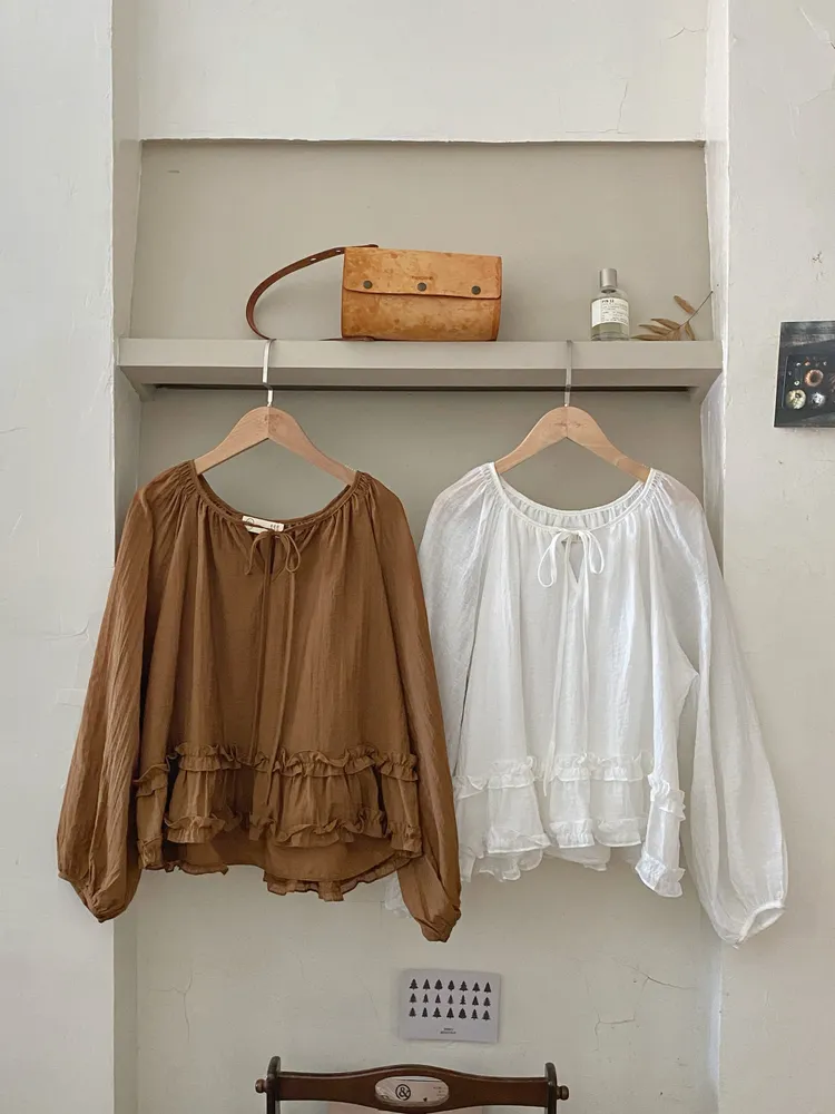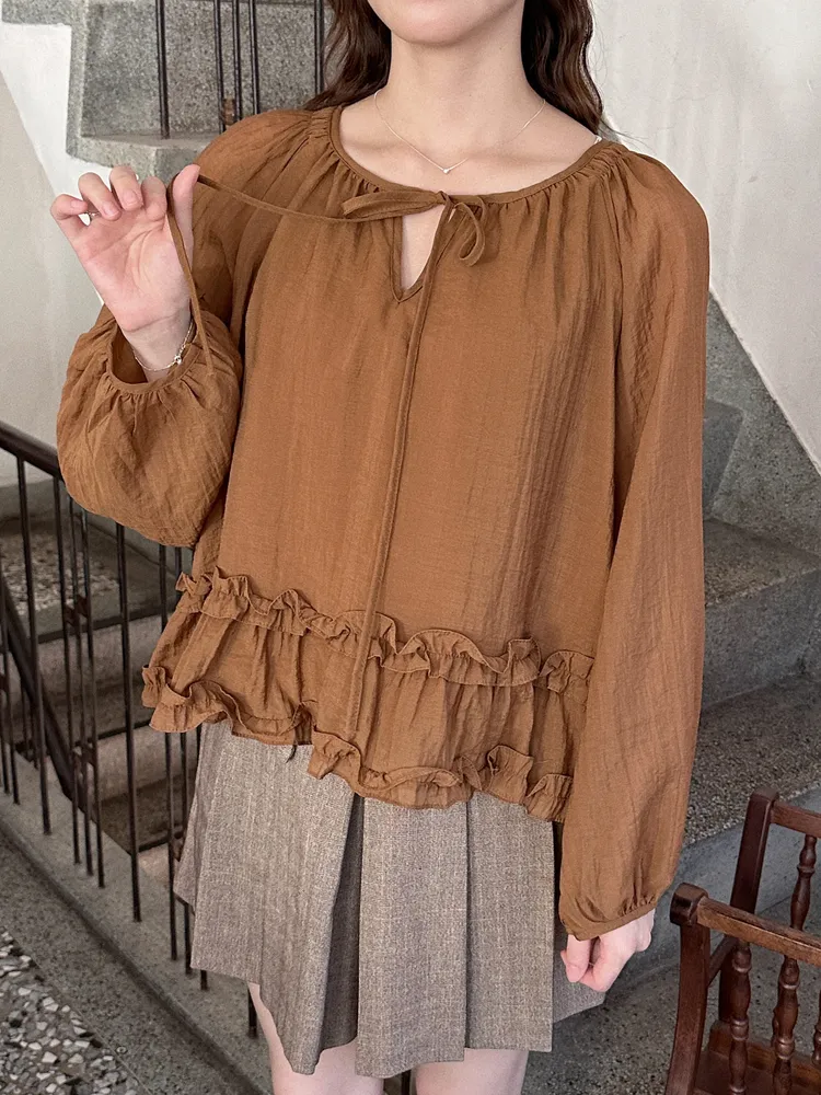 韓甜美雙層次荷葉擺長袖上衣(樣)
