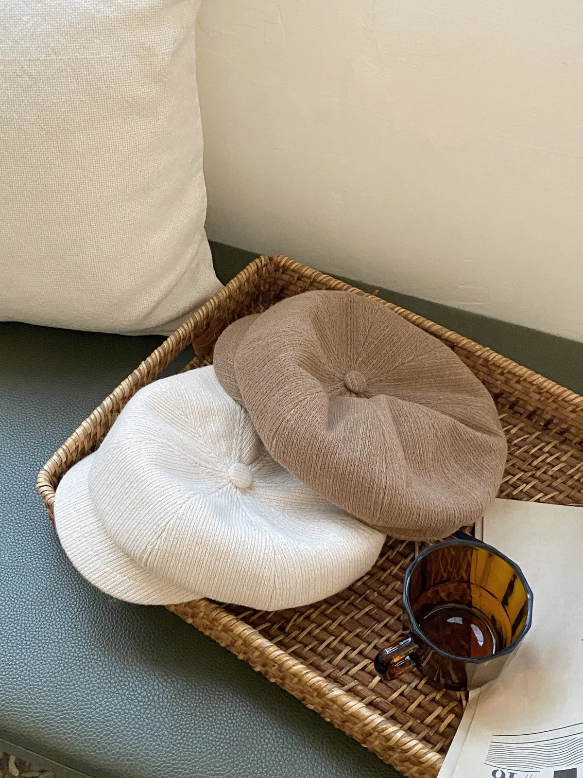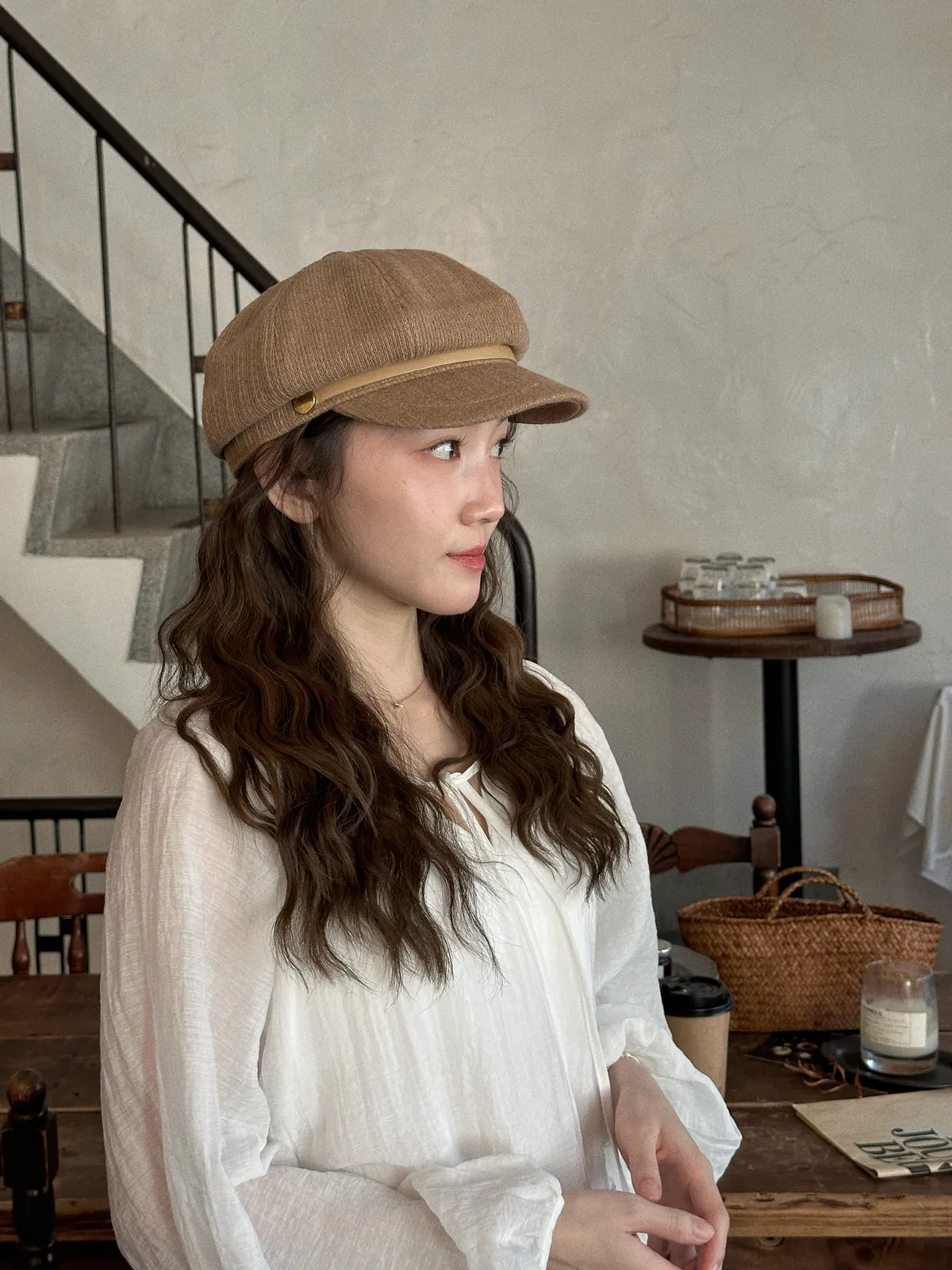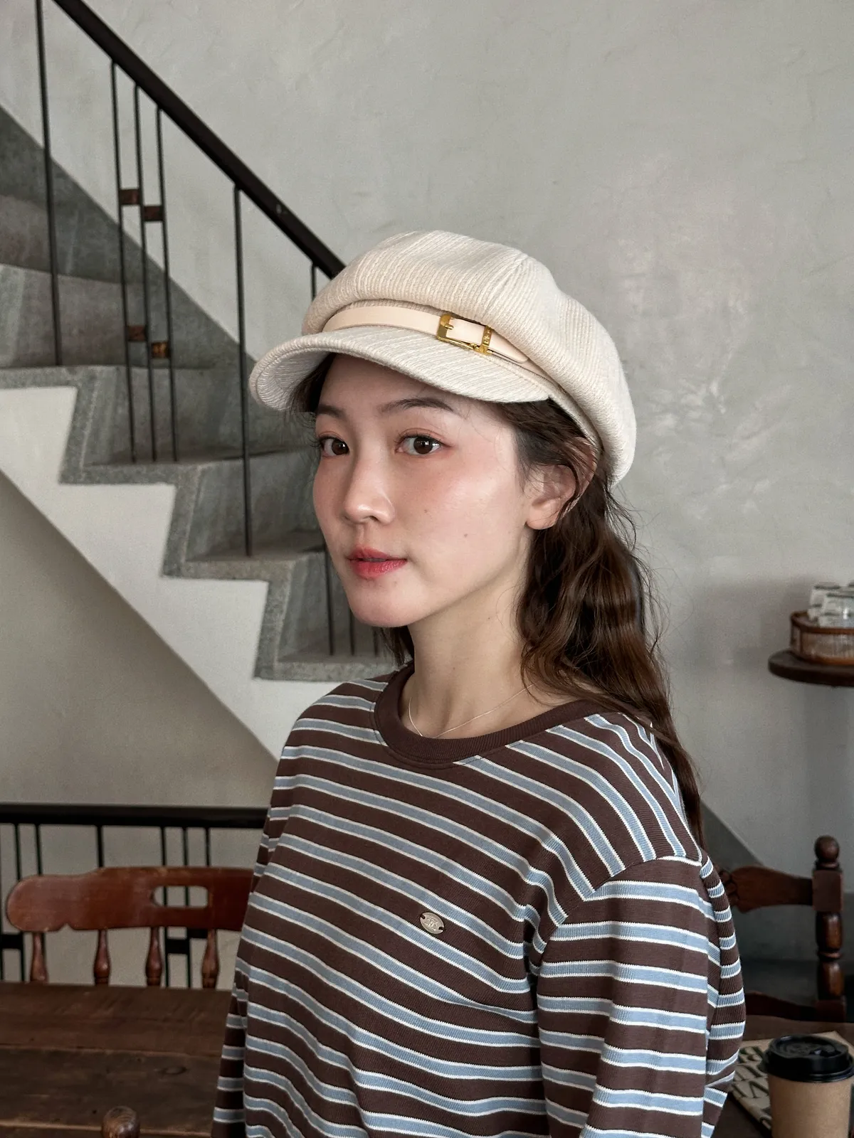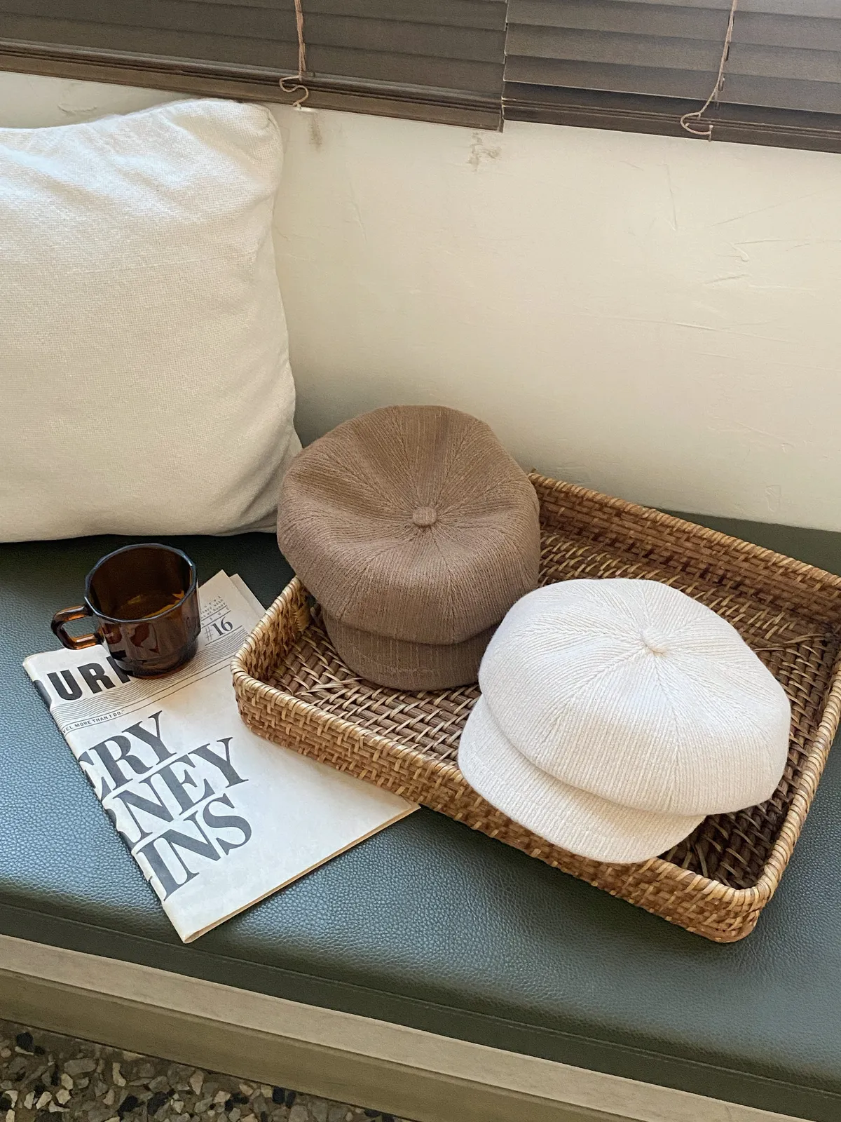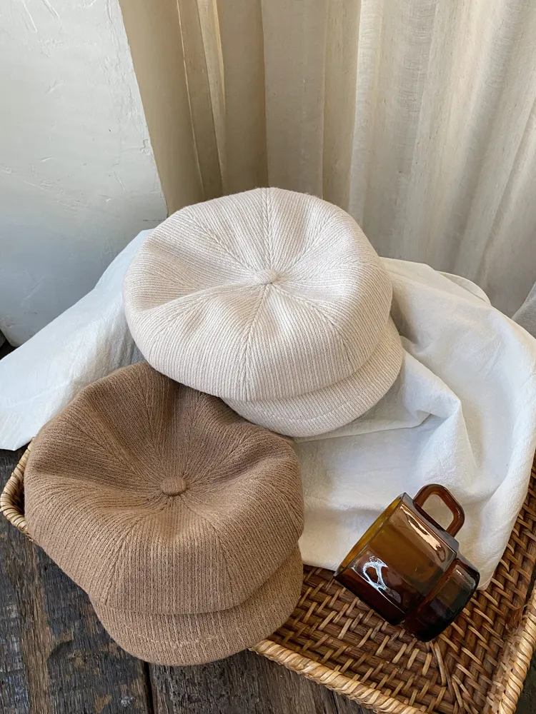 063韓氣質編織感皮革報童帽