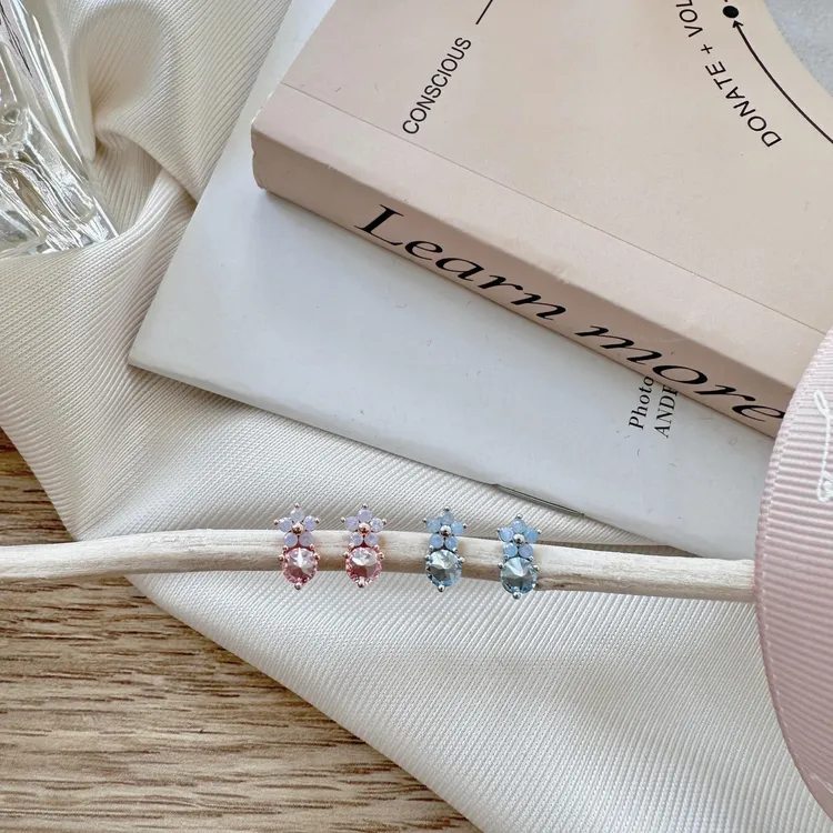 A04韓甜美花朵圓鑽貼耳耳環