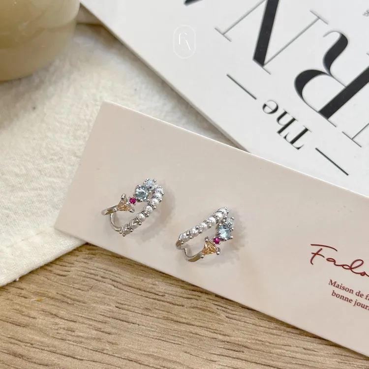 A05韓珍珠幾何配鑽圓鉤耳環