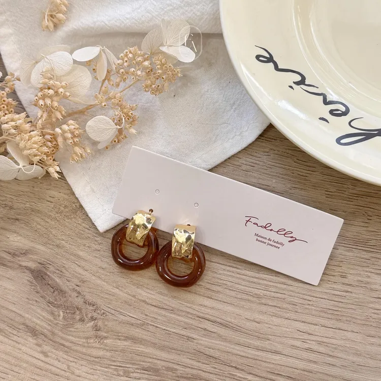 A09韓異國復古琥珀圓鉤耳環