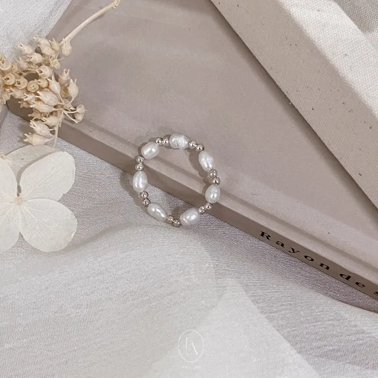 A100韓巴洛克珍珠串銀珠戒指