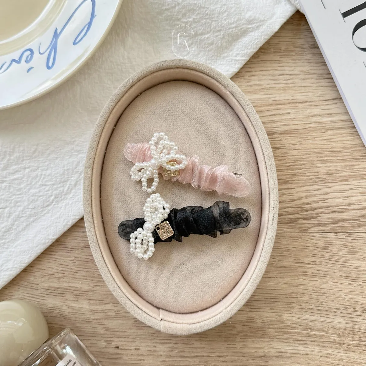 A140韓珍珠蝴蝶結緞帶紗髮夾(優惠推薦)
