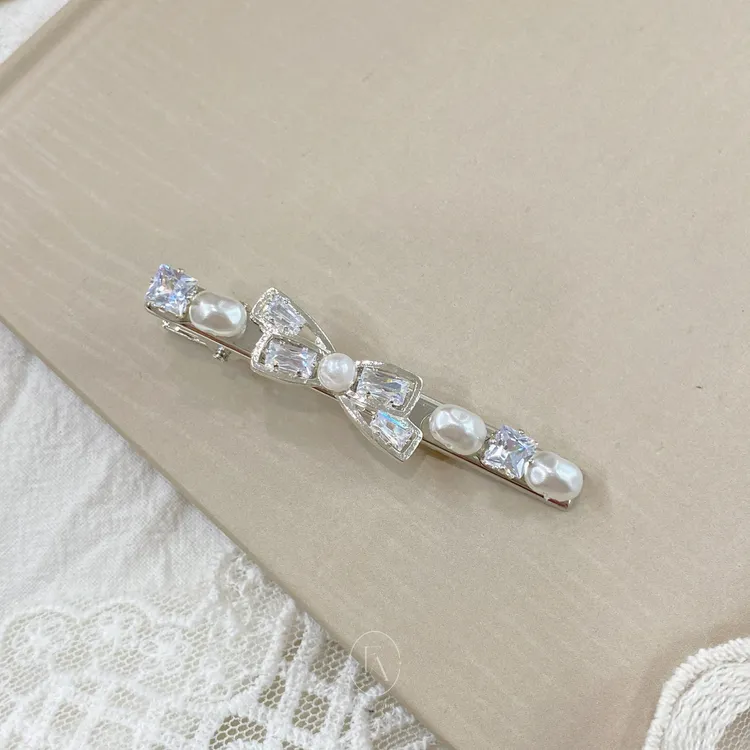 A144韓銀色小蝴蝶結水鑽鴨嘴夾