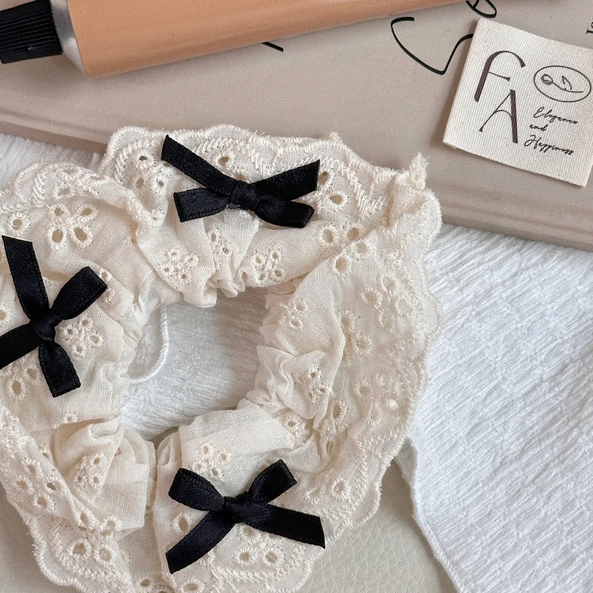 A175黑蝴蝶結緞帶棉麻髮圈