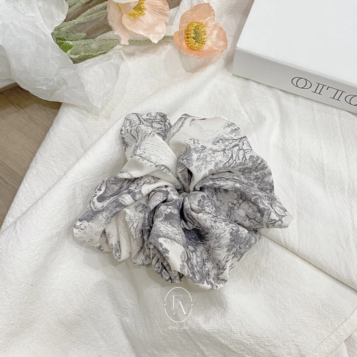 A179韓水黑墨紋路印花絲布腸圈