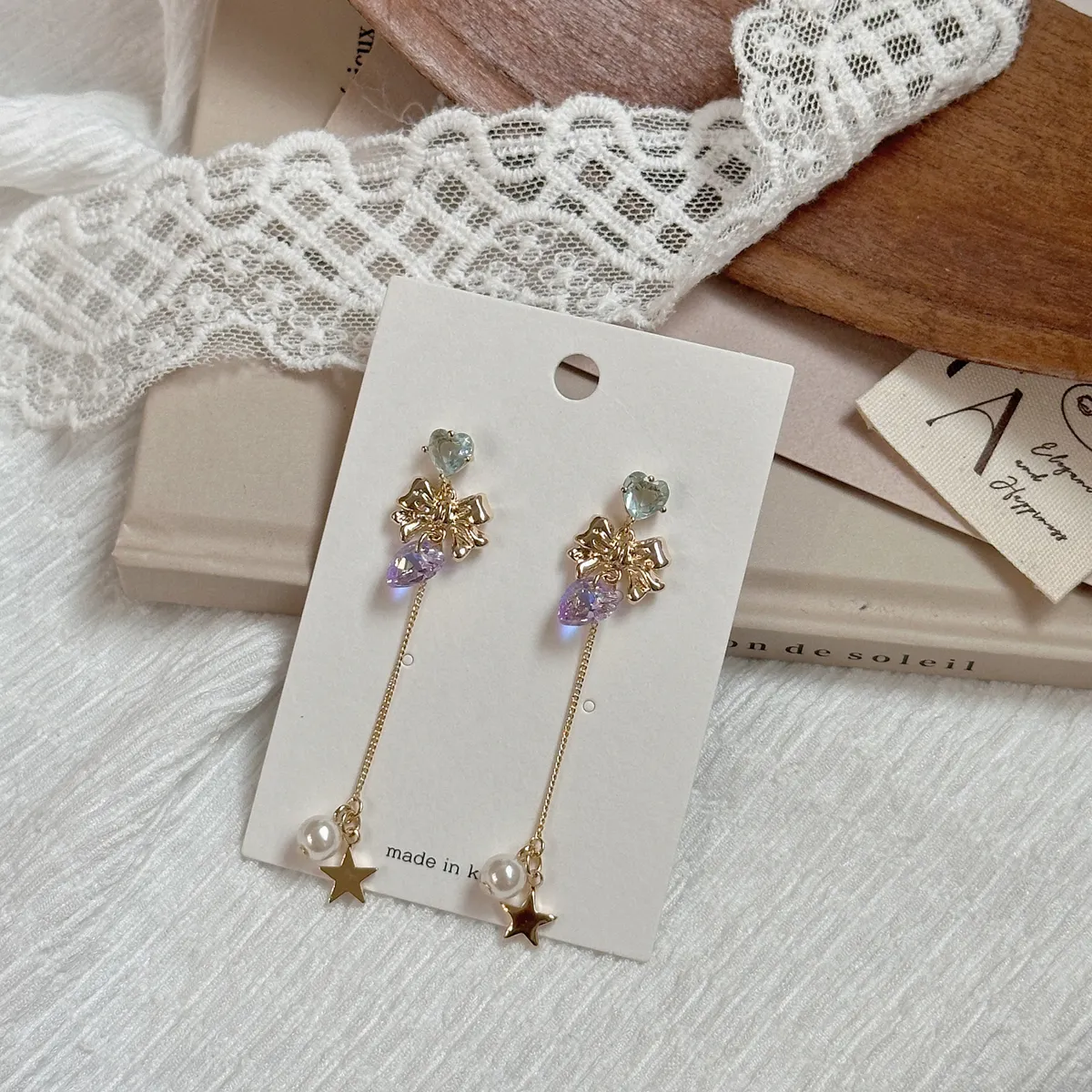 A29蝴蝶結紫愛心垂綴耳環