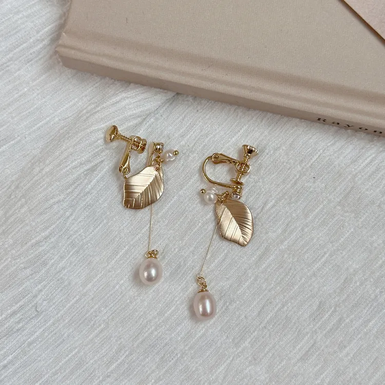 A37葉子珍珠垂綴耳環(耳夾)