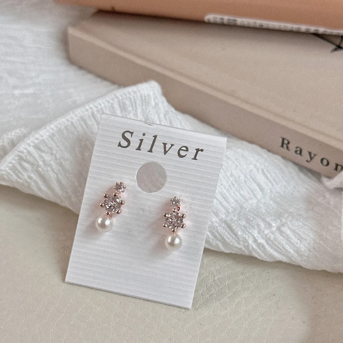 A44珍珠帶鑽貼耳耳環