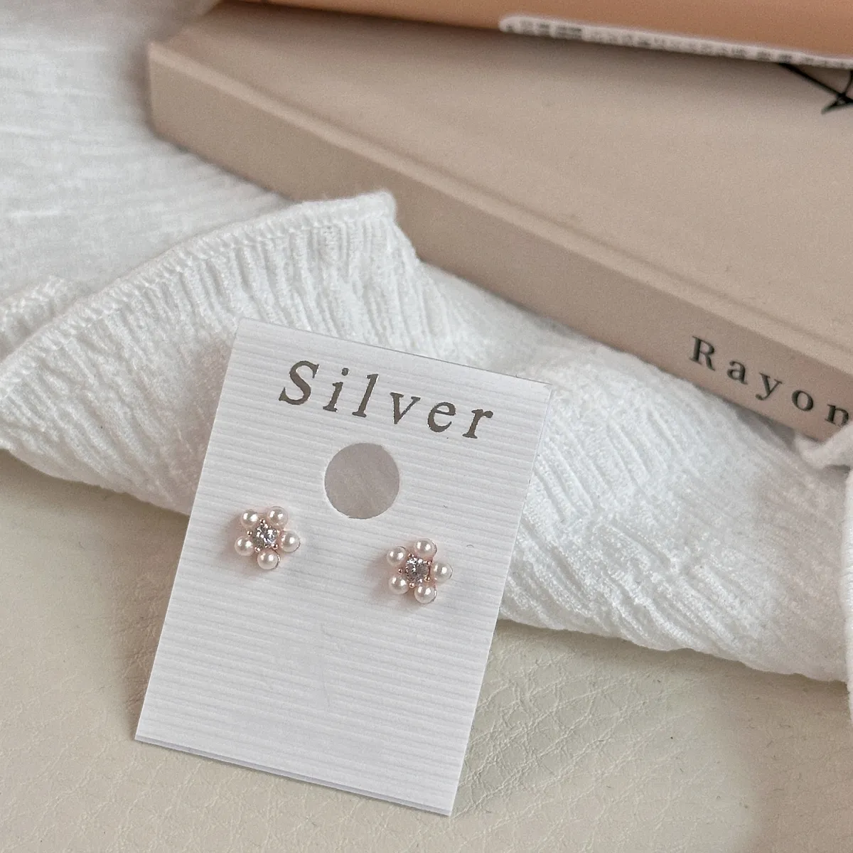 A47珍珠小花貼耳耳環