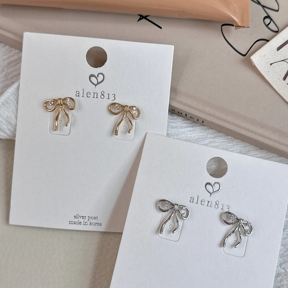 A51流線帶鑽蝴蝶結耳環