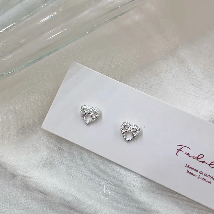 A54韓925愛心碎鑽鏤空蝴蝶結貼耳耳環