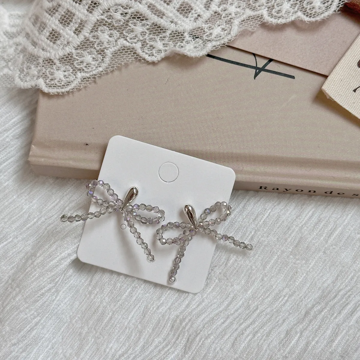 A66紫灰蝴蝶結珠珠耳環