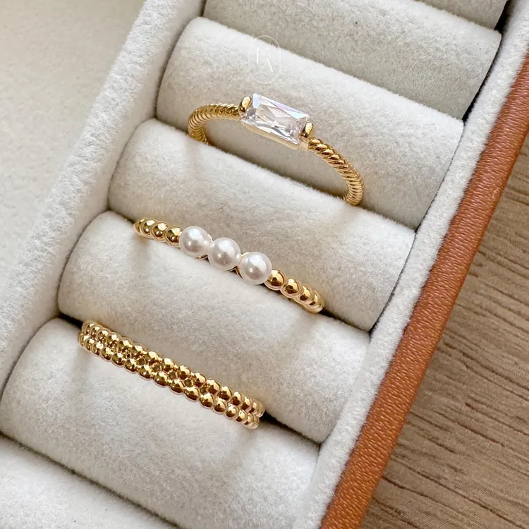 A91韓金色波提螺旋開口戒指