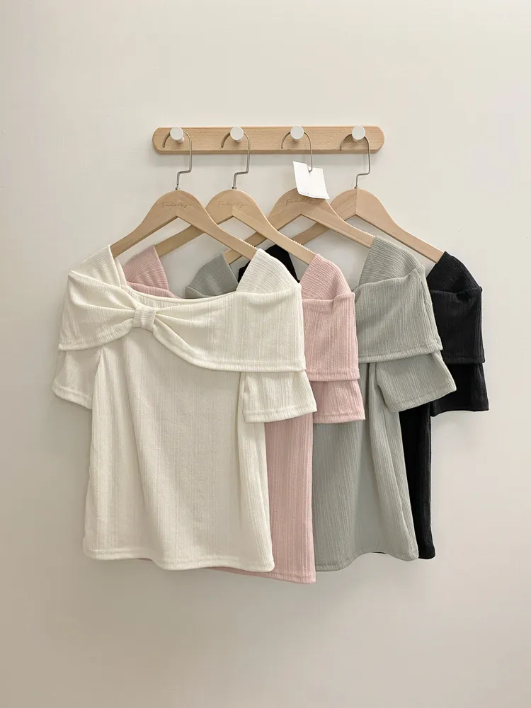 015蝴蝶結落肩造型針織上衣