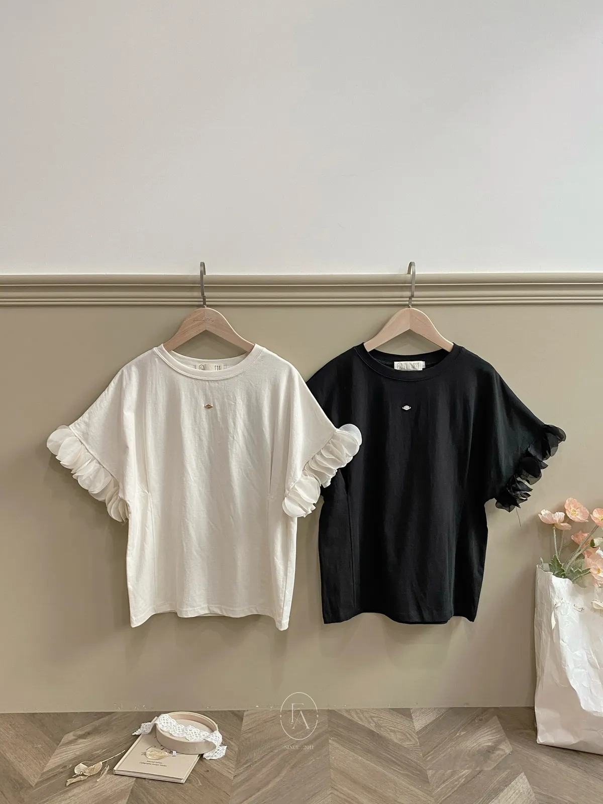 016韓貴氣花圈袖棉質上衣