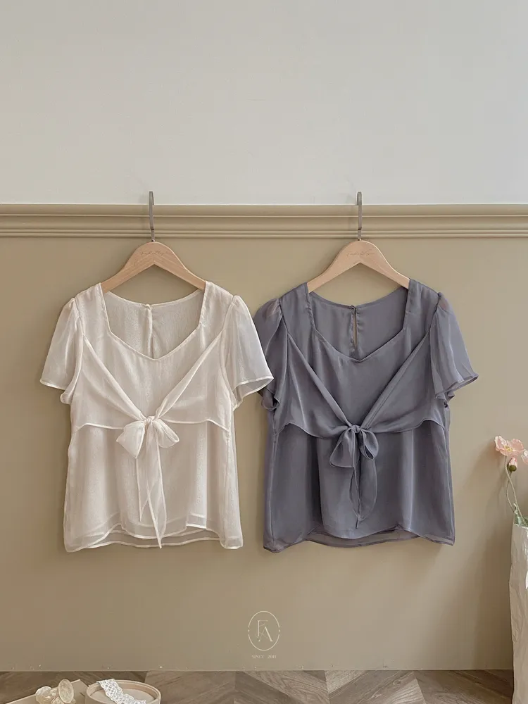 022韓仙女透紗綁帶上衣