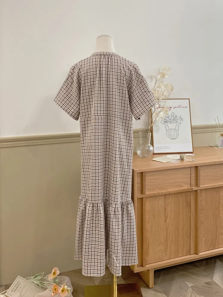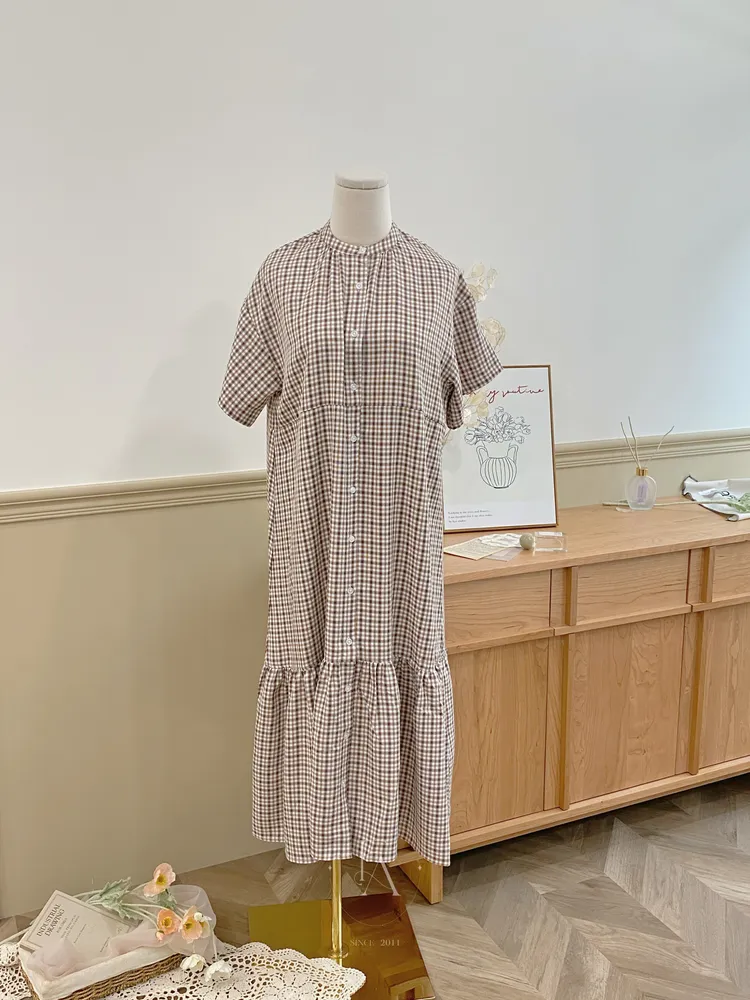 052日本鄰家女孩格紋直釦蛋糕洋