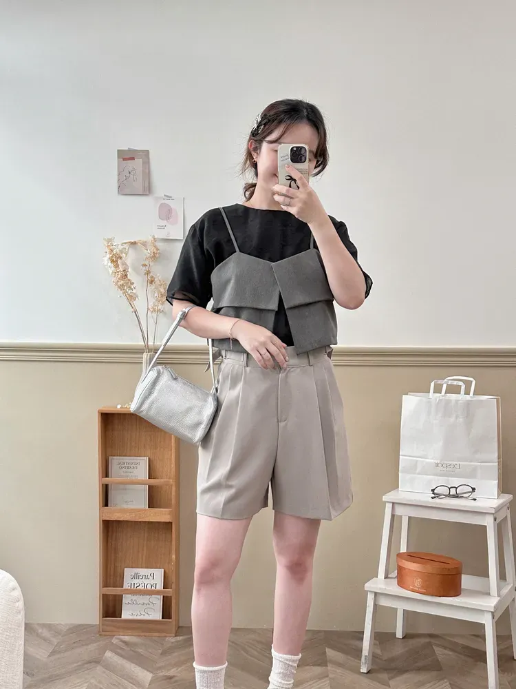 070韓質感扣帶設計西裝短褲