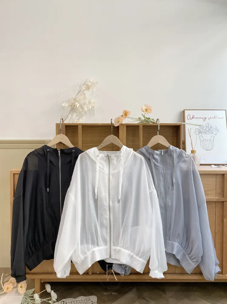 041日本連帽抽繩透膚雪紗外套
