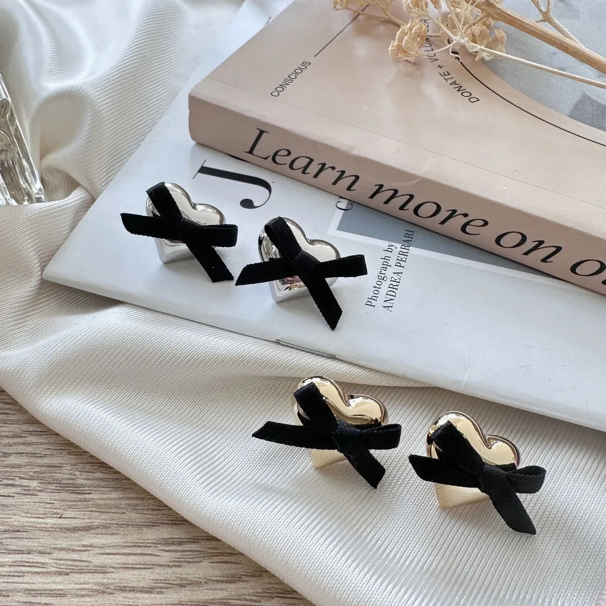 B07韓蝴蝶結愛心貼耳耳環
