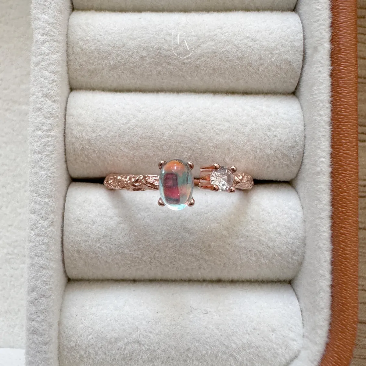 B36韓925橢圓寶石刻紋閃鑽開口戒