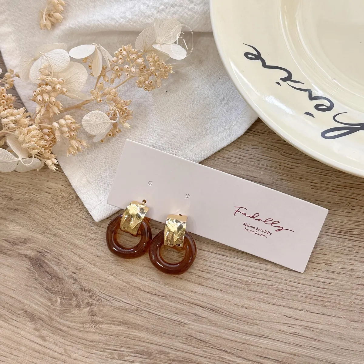 C78韓異國復古琥珀圓鉤耳環