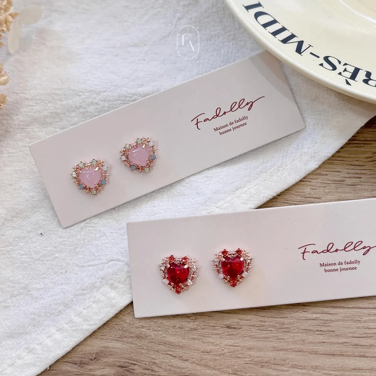 A03韓愛心十字小鑽貼耳耳環