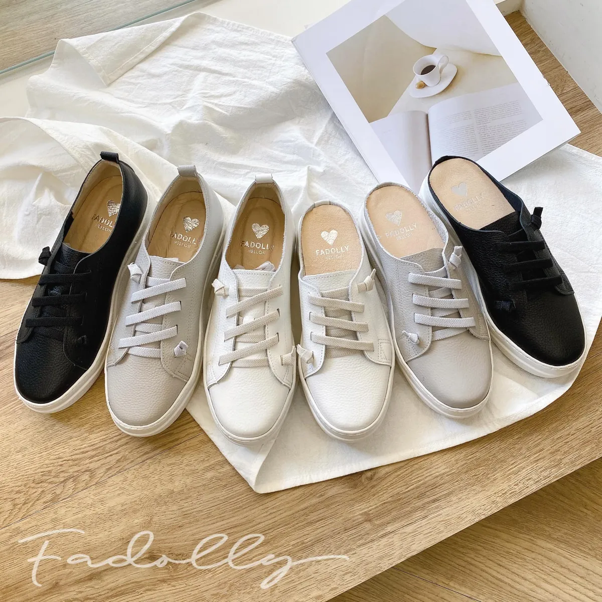 熱銷款!彈性懶人綁帶真皮小白鞋